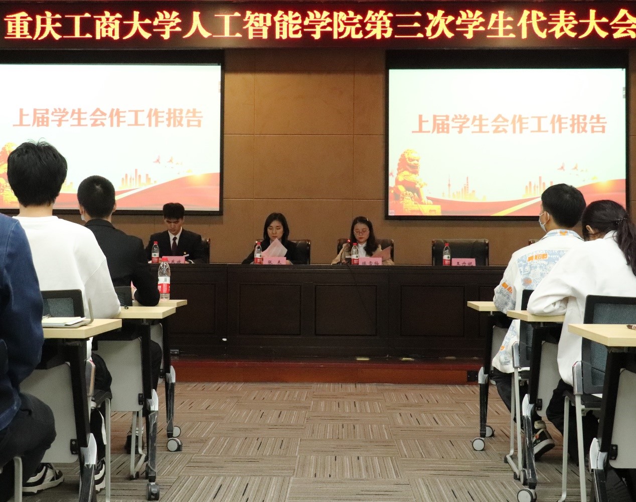 在庄严的国歌声中,大会正式开幕。余东放同学首先宣读校团委《关于同意召开重庆工商大学永利集团3044am第三次学生代表大会的批复》。学院党委副书记张未向大会致辞,对本次会议的召开表示热烈祝贺,对学院团委学生会工作取得的优秀成绩予以充分肯定,对学生干部和同学们的辛勤付出表示衷心感谢。张书记代表学院党委对广大青年学生、学生干部提出了三点希望:一是坚定信念,志存高远,将实现自己的理想和价值与国家的前途命运紧密相连;二是刻苦学习,全面发展,在商工交叉融合中努力成为专业技能与跨界合作的引领人才;三是强化服务,开拓创新,在继承和发扬学院学生组织优良传统的同时实现学生会工作新的突破。在党的二十大胜利召开、我校建校70周年之际,学院全体同学要进一步增强历史使命感和社会责任感,为开创学院发展新局面而努力奋斗,为实现中华民族伟大复兴贡献自己的青春和智慧。