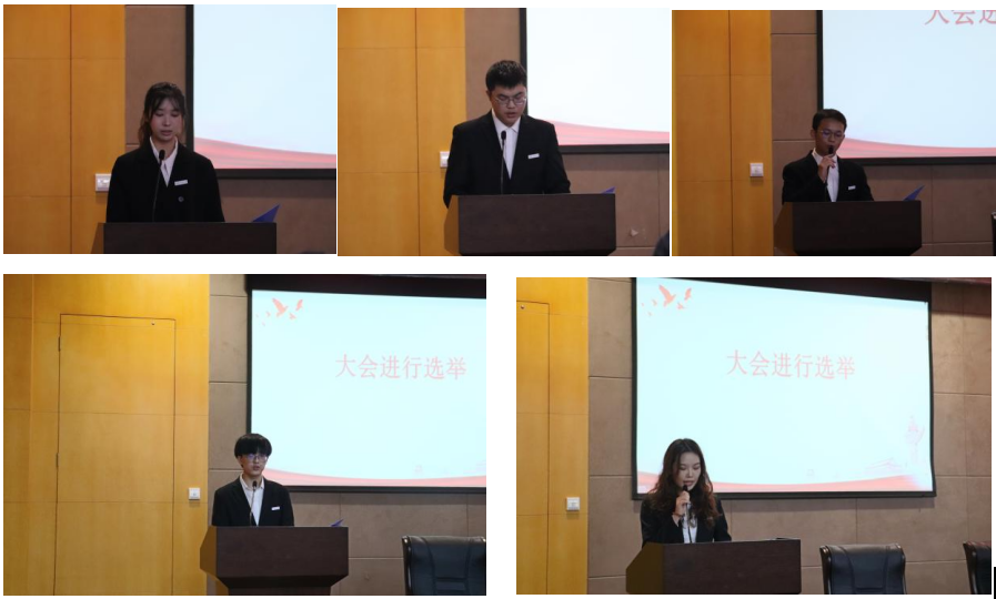 随着庄严的国歌响起,大会正式开幕。校团委学生会主席团成员黄子洁宣读校团委《关于重庆工商大学永利集团3044am(计算机科学与信息工程学院)第四次学生大会》批复。陈江鹏代表上一届学生会作工作报告。报告全面回顾了过去一年学生会以加强政治引领为根本任务,以全心全意为全体同学服务为宗旨,扎实开展思想政治教育工作;积极打造品牌活动,不断扩大学院影响力;响应号召,积极投身社会,深化青年志愿者行动和社会实践活动;注重宣传,规范宣传阵地管理等方面的具体工作,并对接下来的工作内容和方向进行了展望。接下来,大会宣读《永利集团3044am第四次学生代表大会主席团选举办法》,审议通过总监票人、监票人、总计票人、计票人名单以及学院新一届学生会主席团候选人名单。候选人卫恩彤、邵俊力、佘荏臻、刘书宏、陈雨欣分别作竞职演讲,全体学生代表以无记名方式进行投票。根据投票结果,陈雨欣、卫恩彤、邵俊力当选为新一届学生会主席团成员。
