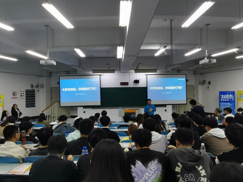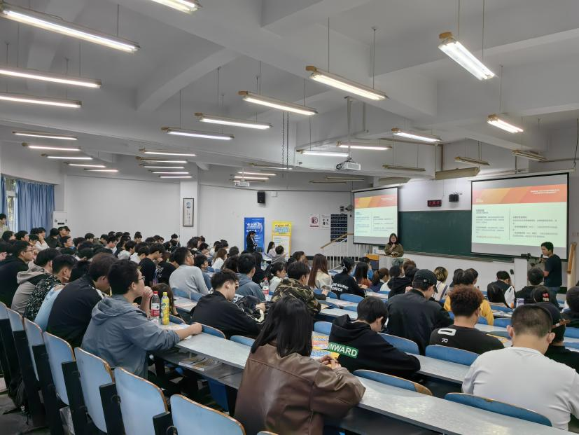 宣讲活动后,中国青年创业导师、中国就业促进会创业专业委员会委员、重庆市校企融合协会会长黄子华博士为大学生带来《大学生创业,你准备好了吗?》主题授课。黄博士首先邀请现场12位同学参加了有趣的目标达成测试,与同学们进行互动交流,随后从大学生们关注的就业环境及发展形势、求职技能、就业技能等多方面进行授课,为大家未来的就业创业之路增加动力、增强信心。