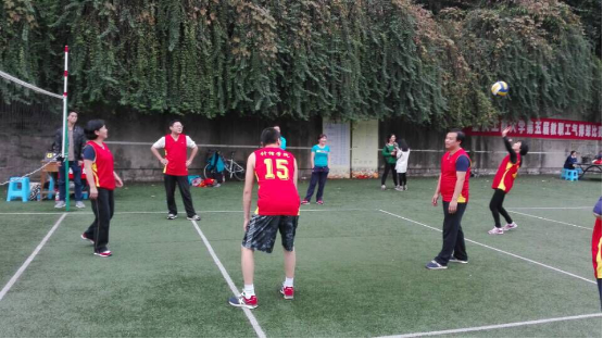 时5天。本次比赛采用男女混合组队参赛。每队每场比赛上场5人,其中女(或男)运动员在场上必须保持2名。第一阶段进行小组循环赛,第二阶段进行交叉赛(A1-C2,B1-D2,C1-A2,D1-B2),并决出前八名。经过抽签分组后,各学院参赛小组按照抽签顺序,于每个比赛日下午16点在主校区北区气排球场依次展开角逐。在五天的激烈厮杀中,我院教职工代表队始终敢打敢拼,徐帆老师还在比赛中扭伤了脚。最终,全体队员充分发扬顽强拼搏的体育精神,以小组赛全胜的佳绩挺进决赛,并最终在决赛中取得第六名的好成绩!