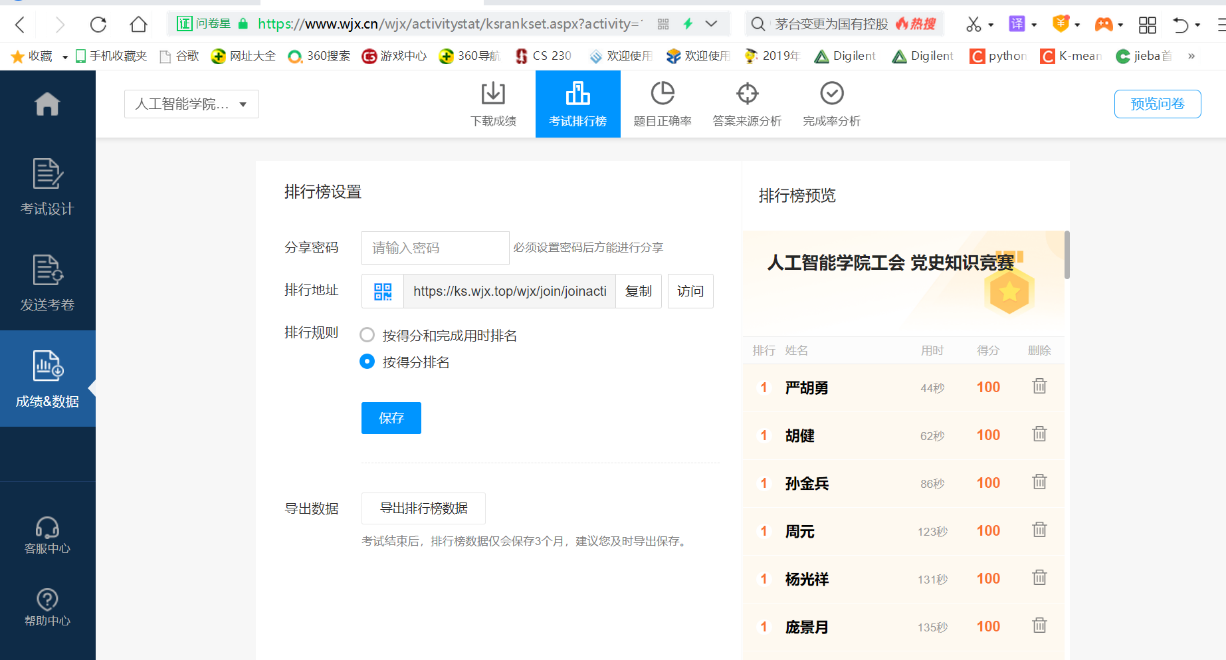 “奋斗百年路,起航新征程”,2021年7月7日中午13点——2021年7月9日晚24点,永利集团3044am工会通过在问卷星平台组卷,老师通过链接答题的方式,成功举行了党史知识竞赛。