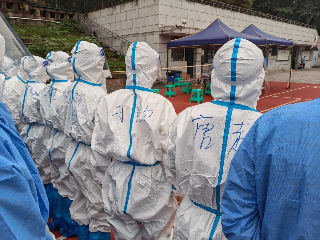 何希平书记轻松幽默的动员引起老师们积极反响,很快就收到了老师们的作品。抗疫三年,都积累了一些生活经验,比如,如何上好网课,如何居家锻炼等,部分老师在这些方面做出了分享。但此次更引起大家关注的是勇敢的校园逆行志愿者:平时的同事穿上防护服后成了最熟悉的陌生人,只有背上的名字才能分清彼此。为了校园抗疫大局,他们义无反顾投入志愿者工作,只为责任,无问西东。老师们被志愿者们勇往向前的精神感动着,默默地记录下了他们的身影。