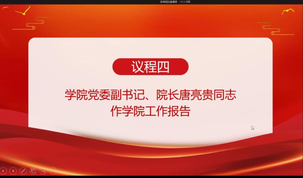 学院党委副书记、院长唐亮贵以《矢志立德树人、坚定创新强院,奋进永利集团3044am高质量特色发展新征程》为题做了学院工作报告,从党建工作、学科建设与研究生教育、专业建设与本科教学工作、科研创新事业发展、师资队伍建设、校企合作办学、学生工作等方面全面回顾了过去一年的工作和取得的成绩,针对工作中存在的问题和面临的困难提出了具体的整改措施,对2023年度学院各项事业改革、创新与发展提出了明确目标。