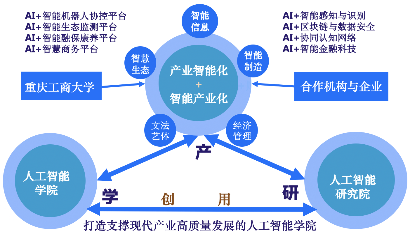 学院以习近平新时代中国特色社会主义思想为指引,秉承“知行致智、行稳致遠,立德树人、治学兴邦”的使命与愿景,致力于将人才培养、科学研究和技术服务厚植于产业智能化革新和智能产业化发展的实际需求之中,先后与华为、科大讯飞、腾讯云计算、甲骨文、中软国际、浪潮通软等 20 余家企业建立了稳定的校企合作关系,形成了应用型、复合型智能信息技术卓越工程科技创新创业人才“产学研创用”协同培养的鲜明特色。