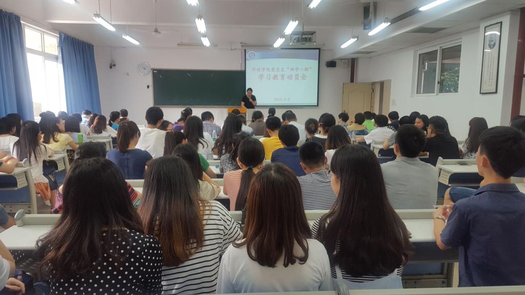 “两学一做”学习教育是继党的群众路线教育实践活动、“三严三实”专题教育后党内教育的又一次重要实践。为贯彻落实《中共重庆工商大学委员会关于在全校党员中开展“学党章党规、学系列讲话,做合格党员”学习教育实施方案》,计信学院党总支与2016年5月6日分两阶段在慧智楼90810和90207召开了“两学一做”学习教育动员大会。计信学院党总支委员、各党支部书记参加第一阶段会议,全体教工党员和学生党员参加了第二阶段的会议。