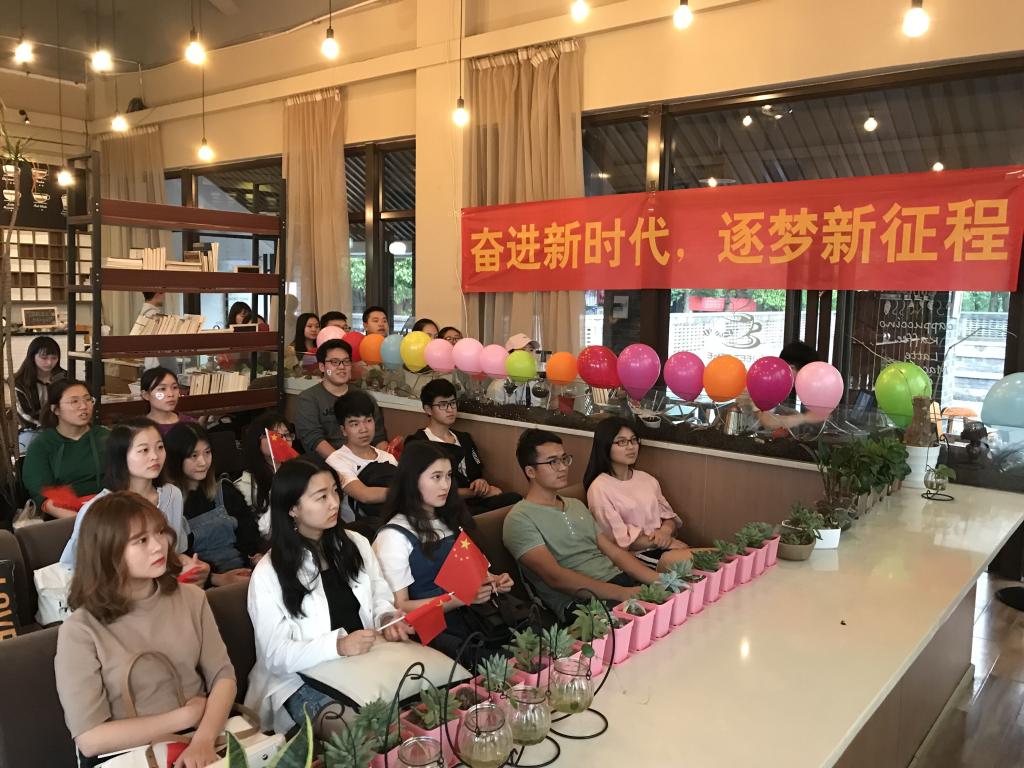 为学习贯彻党的十九大精神,增强民族自豪感和自信心,弘扬中国精神,凝聚中国力量,2018年4月27日晚,计信学院党员服务站在南岸校区香樟林举办了“奋进新时代,逐梦新征程”《厉害了,我的国》观影会。计信学院党员服务站指导老师李菁、小红帽常青藤义协会长廖倩、小红帽家电维修协会会长黄雅军作为嘉宾与数十名党服站员一起参加了此次主题观影活动。